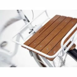 Ce vélo est aussi fonctionnel que magnifique avec un plateau avant et une plateforme de porte-bagages arrière en bois véritable.