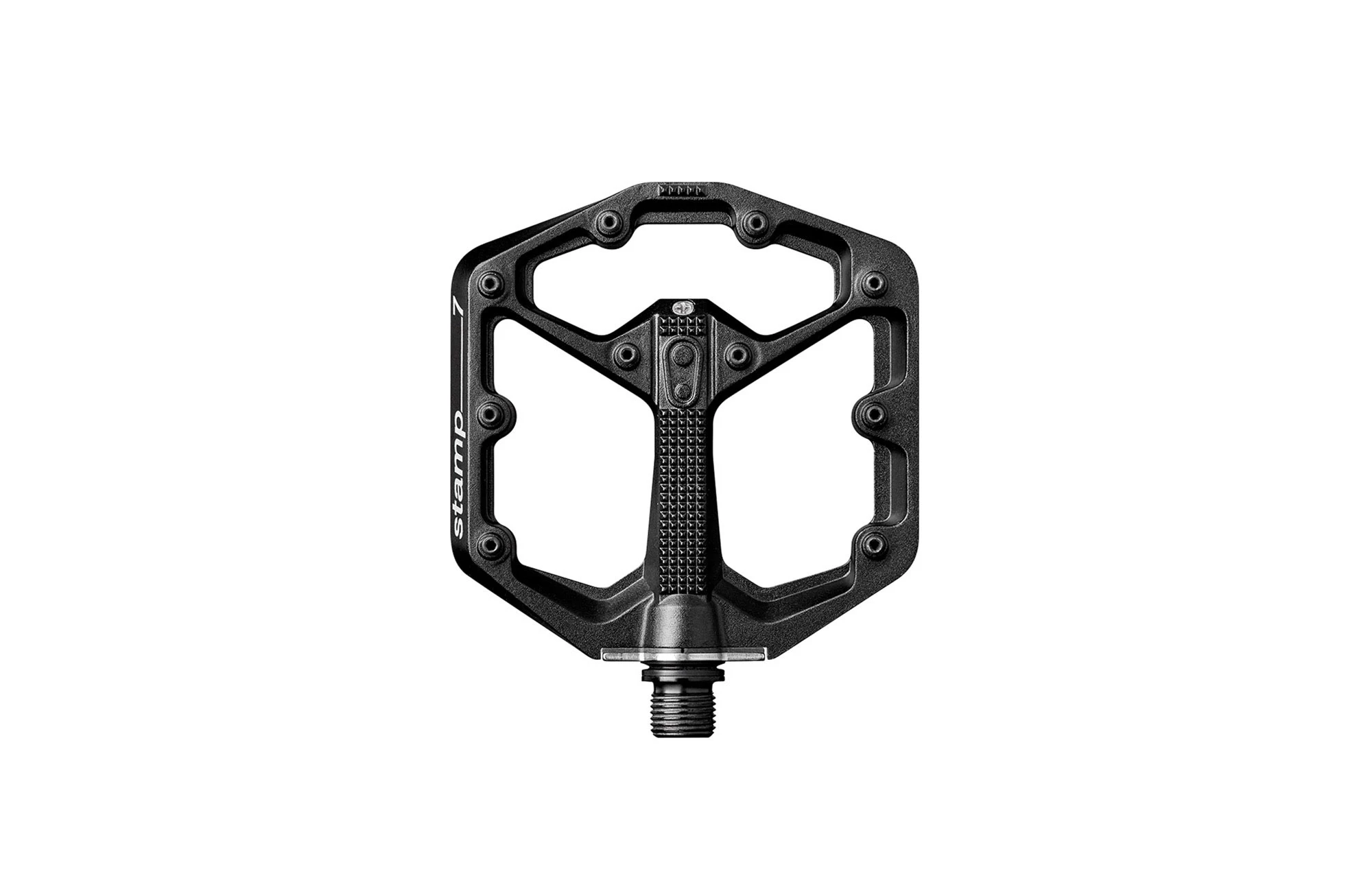 - |DESCRIPTION| La Stamp 7 est peut-être la pédale plate la plus connue et appréciée du marché. Sur cette version la plateforme large 100 X 100mm bénéficie dune conception concave qui sécurise le calage du pied quelles que soient les conditions. Les 10 picots de grip sont ajustables de chaque côté ce qui permet de trouver le réglage parfait selon les besoins et lexpérience de chaque pilote.Cette pédale est également munie de roulements haut de gamme Igus LL Glide bearing. La marque Américaine a même eu la bonne idée de munir la Stamp 7 dun orifice spécifiquement destiné au graissage afin de faciliter lentretien. Laccès à ce dernier se situe au bout de laxe central et souvre en dévissant la vis cruciforme.Aussi à laise en Enduro quen DH, dotée de concepts efficaces et de très bons accessoires, la Stamp 7 ne déçoit jamais.Spécifications techniques : Cage Large 100 X 100mm pour chaussures 37 à 43 (5 à 10 US) Matériau plateforme : Aluminium forgé 6061-T6 Matériau axe interne : Acier Chromoly SCM 435 forgé Profil minimaliste 11 à 13mm dépaisseur Plateforme concave pour sécuriser le maintien du pied 10 picots de grip ajustables de chaque côté de la pédale Roulements internes et externes IGUS LL GLIDE BEARING Poids : 345g la paire Pas de restriction de poids de rider Garantie : 5 ans