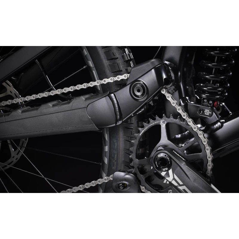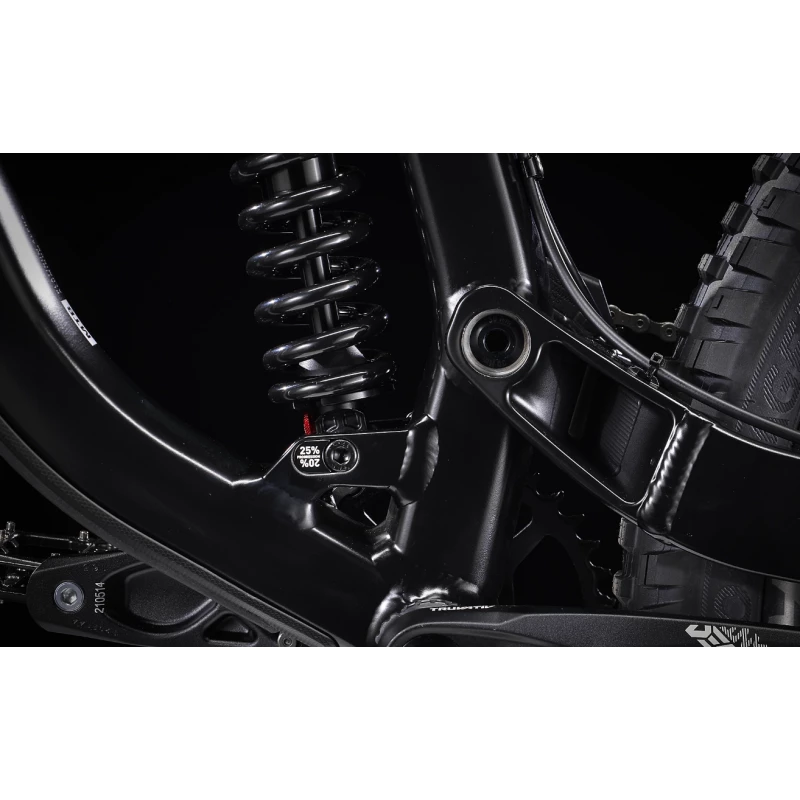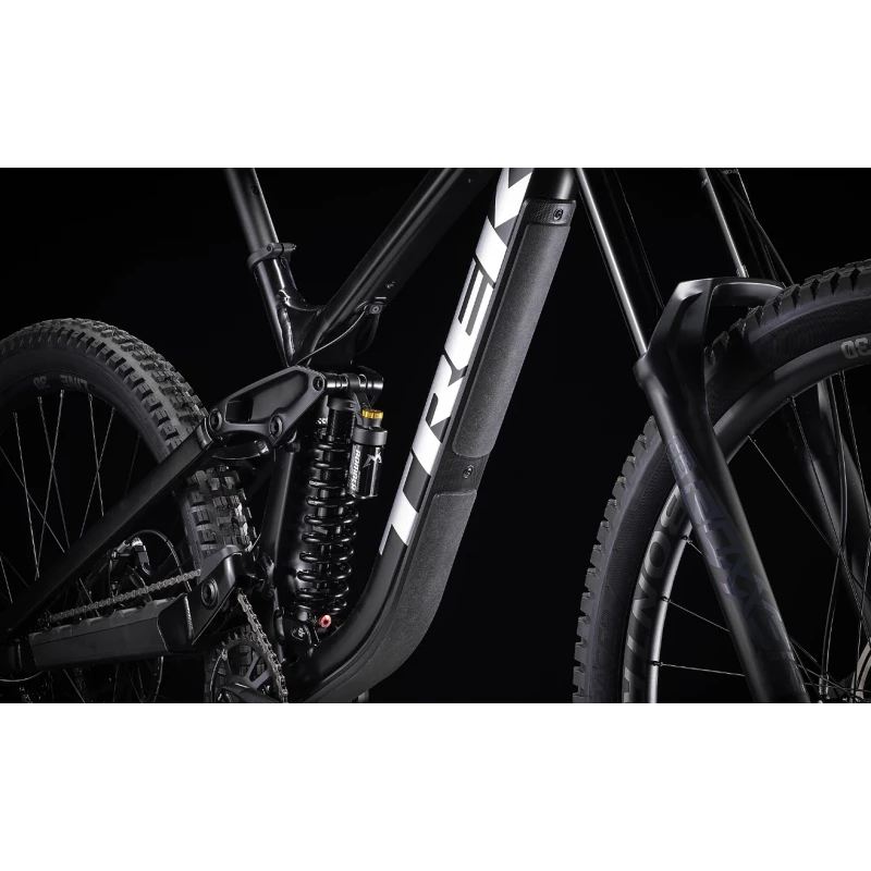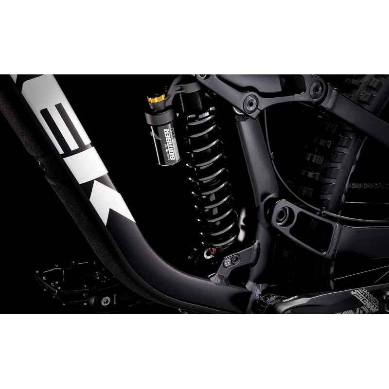 Un cadre robuste en alliage d’aluminium, un débattement de 200 mm à l’arrière avec un amortisseur Marzocchi Bomber, une fourche RockShox Boxxer Select à 200 mm de débattement avec un amortisseur Charger RC rembourré, de puissants freins à quatre pistons Code R 4 et une transmission SRAM GX 7 vitesses.