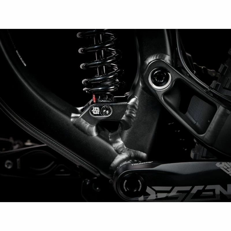 Il se caractérise par un cadre robuste en aluminium, un débattement de 200mmà l’avant et à l’arrière et un groupe SRAM GX DH choisi pour résister aux trajectoires les plus rudes que vous pourriez trouver.