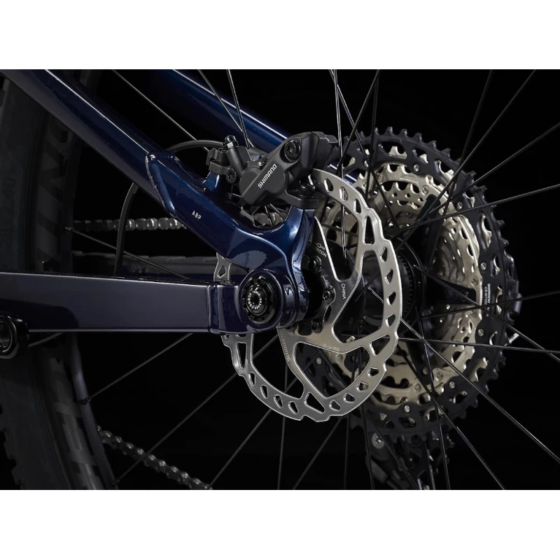 Le cadre en Aluminium léger et rigide est équipé de la suspension arrière Iso, une technologie de suspension exclusive de Trek qui offre une absorption des chocs efficace tout en minimisant le poids de la suspension. La fourche RockShox SID Select+ offre une suspension avant de 120 mm pour une absorption supplémentaire des chocs.