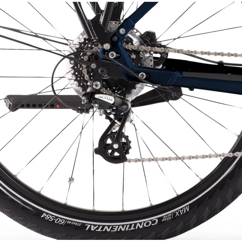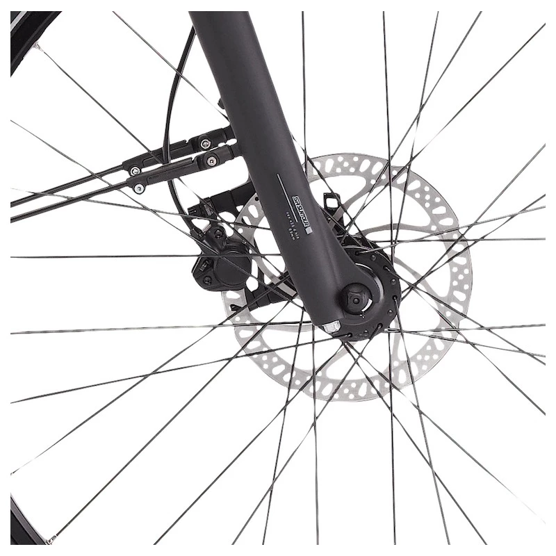 De robustes pneus SChwalbe renforcés de 27,5 » et une fourche aluminium à suspension à l’avant vous permettront d’atteindre votre destination sereinement, même hors des sentiers battus.